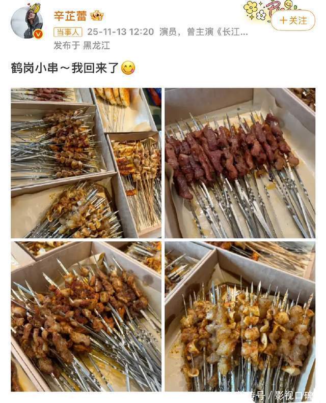 女演员辛芷蕾在其社交平台更新动态,晒出家乡鹤岗的小串。并配文感慨道:“鹤岗小串~我回来了”。油汪汪的肉串勾起了网友们肚里的馋虫,恨不得立马飞去鹤岗品尝一番。而辛芷蕾之所以会出现在此,概因要参加电影《日掛中天》的路演。她从小城草根女孩逆袭成为享誉世界的威尼斯影后,其像野草一般坚韧不屈的生命力让她抓住一切“有利于我”的机遇向上生长。