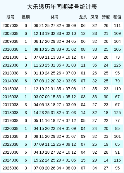 大乐透历年同期奖号数据统计图表